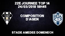 Brive ne perd pas de temps et se lance à l'assaut du camp agenais. Ngauamo tarde à sortir d'un ruck et offre un premier avantage aux brivistes qui jouent au large mais Petrus Hauman est poussé en touche. On revient à la faute agenaise. Face aux poteaux, Gaëtan Germain ouvre le score (3-0, 3'). Agen manque son début de match mais peut piquer en contre. Sur une attaque briviste, Benito Masilevu perd le ballon au contact devant les 22 agenais. Nakosi est à la lutte à la couse, pousse le ballon au pied mais mal, ce qui permet aux brivistes de revenir en catastrophe et de sauver cette occasion d'essai (9'). En touche, Brive parvient à voler plusieurs munitions en touche et revient dans le camp agenais. Si en touche, Brive a l'avantage, ce n'est pas le cas de la mêlée où c'est Agen qui domine. Un SUA qui commence à rentrer dans le match mais qui se fait pénaliser au sol. Germain ne trouve pas la cible (17'). Brive est dans un temps fort et pilonne la ligne agenaise. Agen résiste tant bien que mal et se met à la faute. Germain connait un 2e échec, pourtant largement dans ses cordes (21'). Le buteur briviste vient de laisser 6 points de côté mais Agen va aussi connaitre des problèmes de concrétisation. Brive se met en position de hors-jeu mais McIntyre manque la cible lui aussi (24'). Ce n'est pas le soir des buteurs. Matthieu Ugalde joue au pied dans le dos de la défense agenaise, le ballon roule jusque dans le coin des 5 mètres, Masilevu met la pression sur Mchedlidze qui commet un en-avant. Alors que Julien Ledevedec et Arnaud Mignardi allaient récupérer le ballon, Fonua dégage en touche. Faute volontaire de l'agenais qui écope d'un carton jaune (27'). En supériorité numérique, les brivistes veulent y aller en force mais malheureusement, le ballon est perdu et Agen peut se dégager. Brive ne creuse pas l'écart et s'expose aux attaques agenaises.