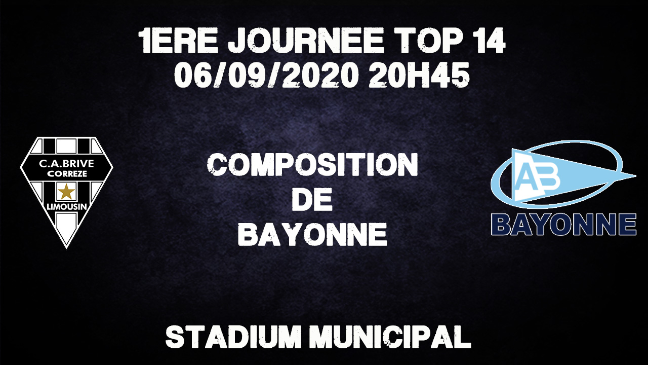 Pour ce déplacement à Brive, Bayonne est privé de Lafage (coude), Usarraga (ischios), Alofa Alofa (adducteurs), Manukula (omoplate), Van Jaarveld (poignet) et Ordas.