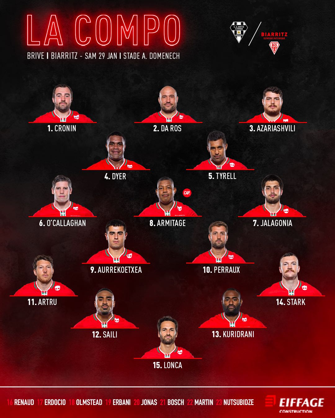 Voici le XV de départ de Biarritz pour le déplacement à Brive :