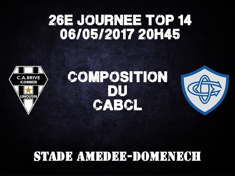 Pour cette dernière réception, Brive change 7 joueurs par rapport à samedi dernier. Les futurs retraités (Guillaume Ribes, Arnaud Méla, Jean-Baptiste Péjoine) ont droit à une dernière sortie. Pour le reste, Sisa Koyamaibole retrouve le groupe en tant que remplaçant.