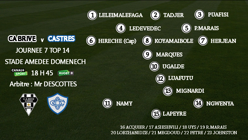 Voici le XV de départ du CA Brive pour la réception de Castres :