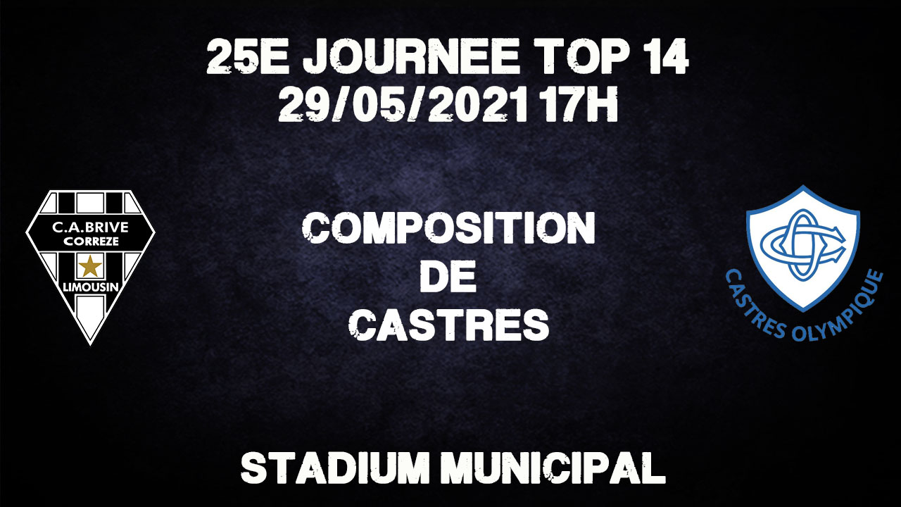 Pour le déplacement à Brive, Castres est privé de Stroe (cervicales), de Benedittis (épaule), Pointud (cheville), Laveau (quadriceps) et David.