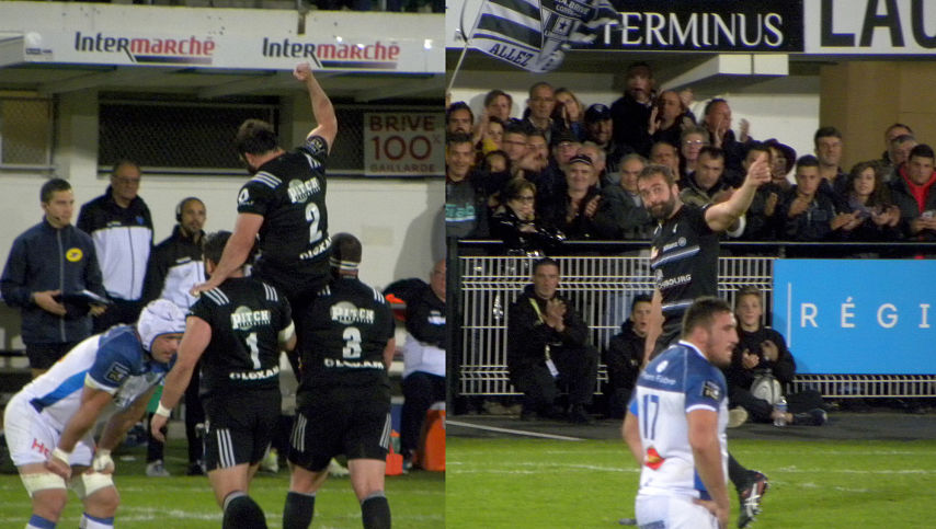 Au niveau de la ligne médiane, le CO se met à la faute. Germain prend les points mais se heurte à la transversale (51'). A peine entré en jeu, Dumora prend un trou et décale Horacio Agulla, l'ancien briviste, qui fait parler sa vitesse pour marquer un essai en solitaire (23-27, 54'). A la suite de cet essai, temps des adieux épisode II avec la sortie de Jean-Baptiste Péjoine, sous une ovation plus que méritée pour celui qui n'a connu que le CAB dans sa carrière.
