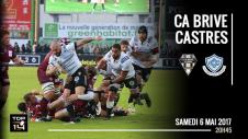 Après de nombreuses fautes en mêlée, Mr Poite donne un carton jaune à Stroe, Castres va évoluer à 14 pendant 10 minutes (58'). Brive choisit la pénaltouche et déroule un maul qui progresse très bien. Castres se met à la faute pour éviter l'essai. Mr Poite accorde un essai de pénalité au CAB (30-27, 59'). Le jeu s'équilibre mais cela se déroule dans la moitié de terrain castraise. Après une pénalité contre le CO, Brive fait le choix de la pénaltouche à 5 mètres. Malheureusement, il y a un contact entre Saïd Hirèche et Soso Bekoshvili. Occasion manquée de faire le break dans ce dernier quart d'heure mais l'indiscipline tarnaise donne une nouvelle opportunité à Germain d'accroître l'avance de son équipe. C'est chose faite avec cette pénalité (33-27, 72'). Castres veut la victoire et se jette à corps perdu dans cette fin de match mais la défense briviste tient bien et repousse toutes les tentatives. Dernière bataille dans un ruck et Brive gagne le ballon et sort en touche pour clôturer la saison 16/17 sur une victoire et une huitième place au classement.