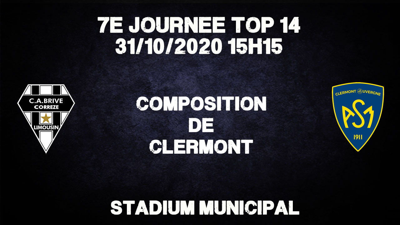 Pour le déplacement à Brive, Clermont est privé de Parra (malade Covid), Yato (genou), Beheregaray (genou), Penaud (cheville), McIntyre (main), Naqalevu (commotion), Lapandry (commotion), Moala (cervicales), Ezeala (adducteurs), Veredamu (genou), Raka (suspension).