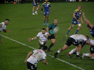 Sous les yeux de Patrice Collazo, Brive va devoir rapidement hausser le rythme pour espérer revenir dans le match. Il y a beaucoup d'imprécisions et le seul rayon de soleil est Nicolas Sanchez. L'ouvreur argentin semble être le seul qui arrive à faire des différences et à mettre le feu dans la défense clermontoise (c'est peut être le numéro et la nationalité qui veut ça actuellement, non ?). Brive obtient une pénalité pour hors-jeu mais son buteur argentin manque la cible (45'). Il y a du mieux au CAB. Le maul avance et entre dans les 22 mètres. Les charges se multiplient et la défense adverse est sur le reculoir. Sammy Arnold est lancé plein fer dans la défense mais il est stoppé à quelques mètres de l'en-but. La défense est à nouveau à la faute et Brive fait le choix de la mêlée. Mauvais choix car le ballon est perdu à la poussée et l'ASM peut se dégager (49'). Clermont semble être resté aux vestiaires et Brive tente d'en profiter. Dans les 22 mètres, le CAB a une nouvelle mêlée mais c'est le même résultat que la précédente : ballon perdu alors que l'introduction est briviste (55'). On continue d'apporter du sang frais à Brive avec notamment le changement de la charnière (et donc la sortie d'un très bon Nicolas Sanchez) et aussi l'entrée de Thomas Laranjeira. On tente d'accélérer le jeu alors qu'on campe depuis de longues minutes sur les 22 clermontois. Le ballon circule bien et Tom Raffy alerte Aaron Grandidier-Nkanang. Le septiste prend de vitesse Damian Penaud et Sébastien Bezy avant d'être plaqué par Alexandre Fischer. Mais l'ailier parvient à passer les bras pour Enzo Sanga qui marque l'essai de l'espoir. Dans sa construction finale, on se voyait avec l'équipe de France à VII avec Aaron Grandidier-Nkanang en action ! (10-13, 59').