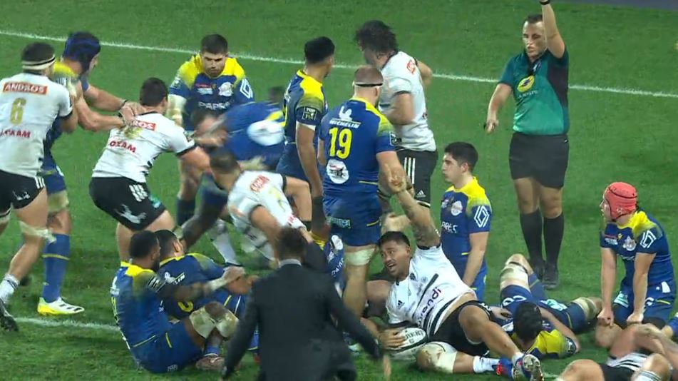 Ca s'accroche dans l'en-but et difficile d'être sûr à 100% si le ballon est aplati alors la vidéo est demandée. Et l'essai est bien validé et accordé à Abraham Papali'i ! (20-16, 80+8')