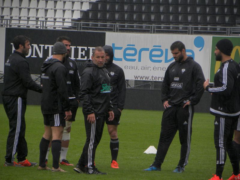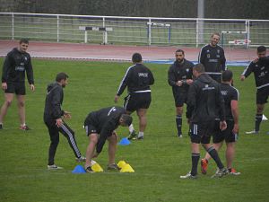 Etant donné que la réception de Montpellier est dimanche, le programme de la semaine se décale en conséquence. Ce mardi, les joueurs étaient de retour à l'entrainement pour repartir de l'avant après le match à La Rochelle samedi soir. Le staff se partage et organise un entrainement à la carte ou plutôt à l'atelier. Tandis que Didier Casadéi s'occupe d'une partie des avants, Philippe Carbonneau et Nicolas Godignon (séparément) travaillent l'animation offensive. Une reprise en douceur, dans la bonne humeur (mais sérieuse).