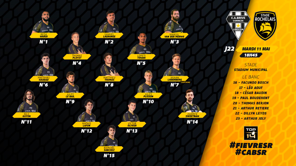 Voici le XV de départ de La Rochelle pour le déplacement à Brive :