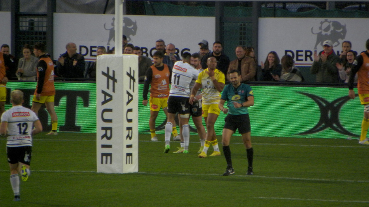 Sur l'action précédente, Julien Delannoy s'est blessé aux côtes et est remplacé par Andrés Zafra. La Rochelle fait parler sa puissance pour avancer comme avec Tanga, Picquette ou Colombe. Noé Bedou (qui a remplacé Sasha Gué blessé à la cheville lors de la mise en place) se fait prendre par l'arbitre en position de hors-jeu. Hastoy réduit l'écart (10-6, 27'). Ca bataille dans le jeu au sol et s'ils ne sont pas brillants dans le jeu, les rochelais sont dans le match. La sortie de Delannoy a enlevé de la puissance dans le pack briviste et cela se ressent en mêlée. La Rochelle cherche à mettre de la vitesse dans ses attaques avec Raymond Rhule qui entre dans les 22 brivistes mais Oskar Rixen parvient à gratter le ballon dans le ruck et Brive peut se donner de l'air (32'). C'est une image qu'on n'aime pas voir, à savoir une mêlée qui s'écroule et un pilier qui reste au sol. Marcel Van Der Merwe est touché et sort passer un protocole commotion (34'). Après un nouveau lancer pas droit pour Quentin Lespiaucq, c'est au tour de Motu Matu'u d'en faire un alors que la position d'attaque était intéressante (38'). Rhule met en difficulté les défenseurs brivistes qui n'arrivent pas à stopper le centre rochelais. A la sirène, Mr Praderie sanctionne la défense du CAB, prise dans les duels et sur le reculoir. Hastoy ramène les siens à seulement un point à la pause (10-9, 40+1'). Le match est brouillon des deux côtés et si Brive a frappé en premier, son indiscipline laisse La Rochelle plus que dans le match.