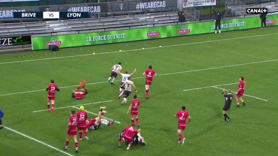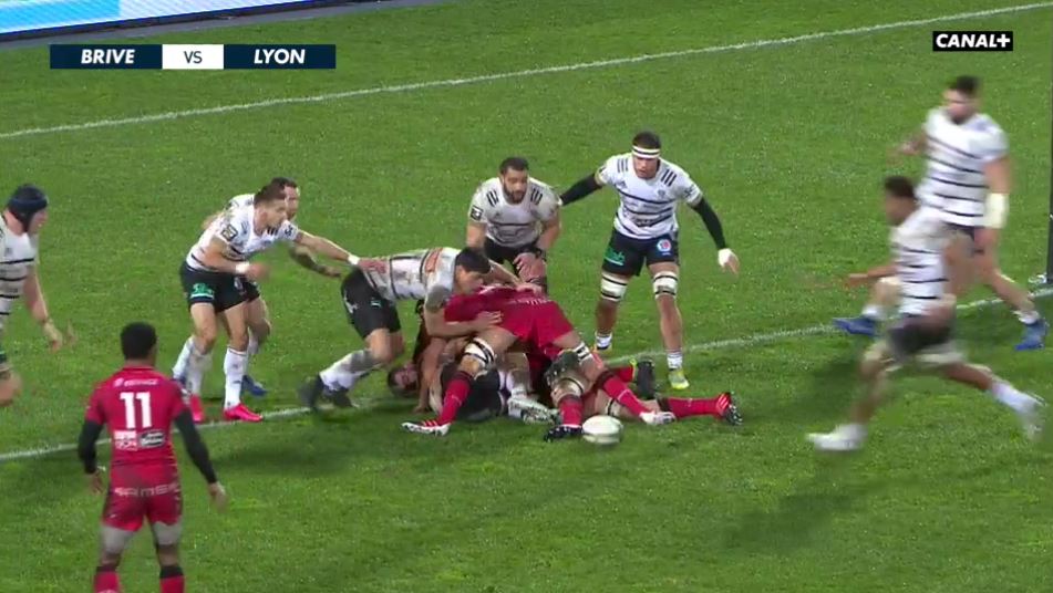 Et Brive passe d'un essai et d'un potentiel 16-8 à une période d'infériorité. Enzo Hervé juge mal la défense lyonnaise et se fait intercepter. Ngatai joue au pied mais se fait plaquer sans ballon, carton jaune pour Hervé (35'). Lyon opte pour la pénaltouche. L'attaque tente d'y aller en force mais la défense repousse l'assaut, Berdeu tente d'alerter Nakaitaci mais la transervale va direct en touche. Lyon commet pas mal de petites erreurs qui l'empêche de prendre le score. Brive s'applique en défense et tente de profter de la moindre opportunité en attaque. La sirène retentit et Brive mène d'un point 9 à 8. Une période marquée par 3 blessures et 3 protocoles commotion. La période de Noël a fait mal aux organismes des deux équipes.