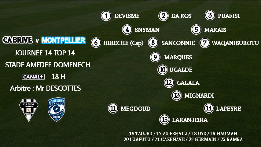 Voici le XV de départ du CA Brive pour la réception de Montpellier :