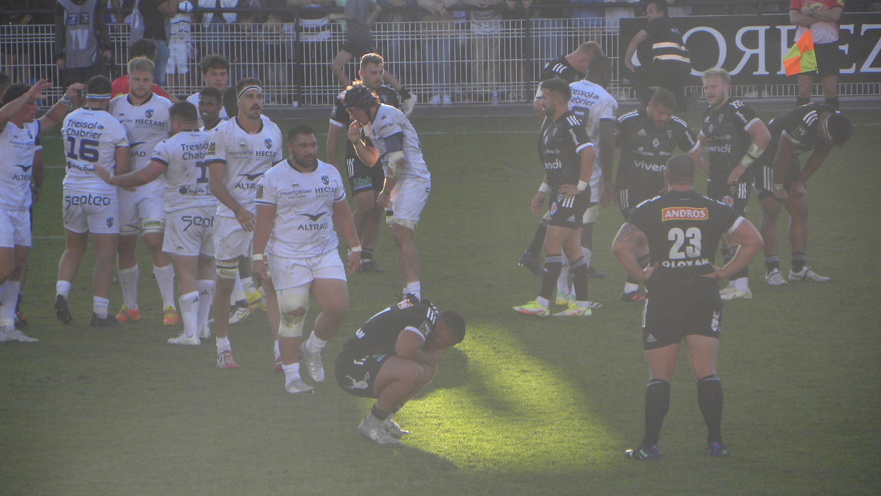 Mais le vent va tourner pour l'arrière briviste. Sur plusieurs attaques, les centres montpelliérains jouent des coups de pied rasants et trouvent de belles touches. Nouveau coup de pied dans le dos de la défense et sous pression, Laranjeira se fait contrer par Nico Van Rensburg qui marque l'essai derrière le contre (26-31, 71'). Tandis que le public avait redonné de la voix après la pénalité, Montpellier a posé la climatisation au Stadium qui a pris un coup derrière la tête. Les minutes défilent et la défense de Montpellier gère les attaques brivistes qui ont perdu en puissance et en imagination. Et sur une mêlée remportée, le public et l'équipe reprennent espoir. Epreuves de force sur les 22 et derrière une mêlée pénalisée, Brive opte pour la pénaltouche. Si la zone de lancer est bizarre, elle est malgré tout captée et les brivistes font le siège de l'en-but de Montpellier. La défense est à la limite et se fait sanctionner d'un carton jaune pour Carbonel (80'). Nous sommes à près de 5 minutes de temps additionnel. Dernière mêlée. Abraham Papali'i s'en extrait, Paolo Garbisi se sacrifie pour gêner le numéro 8 briviste qui tente alors une passe à une main vers Olding mais le ballon est perdu et récupéré par Montpellier qui scelle sa victoire au Stadium, la première depuis 10 ans.
