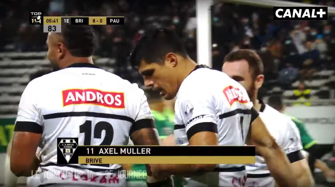 Comme la saison dernière (en tout cas en début de saison), il ne faut pas arriver en retard au match de Brive (que ce soit au stade ou pour la plupart des supporters devant l'écran) car ça attaque dès les premières minutes. Après une ouverture du score de Thomas Laranjeira, le CAB dans son ensemble se lance dans un essai de 60 mètres conclu par Axel Muller. De toute beauté.