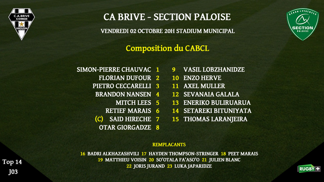 Voici le XV de départ du CA Brive pour la réception de Pau :