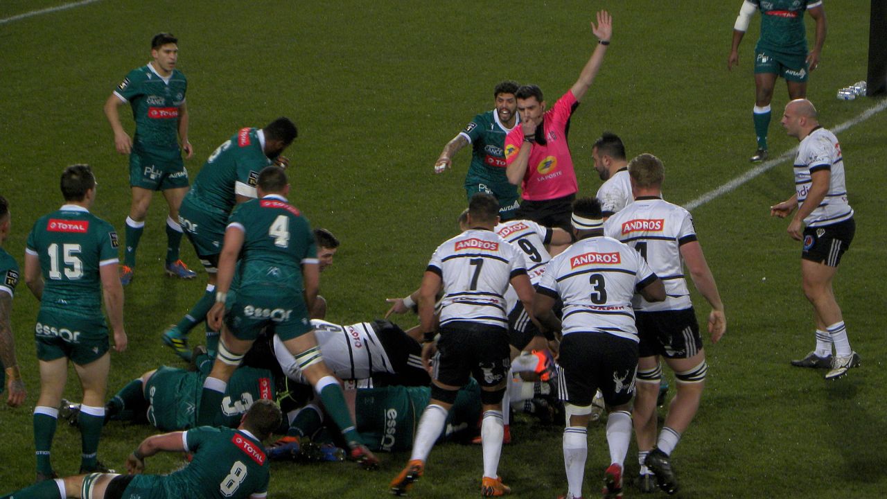 Pau : 2 essais de Vatubua (28') et Septar (30') ; 4 pénalités (13', 18', 22', 57') et 2 transformations de Hastoy ; 2 cartons jaunes pour Votu (15') et Vatubua (72')