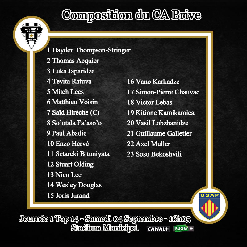 Voici le XV de départ du CA Brive pour la réception de Perpignan :