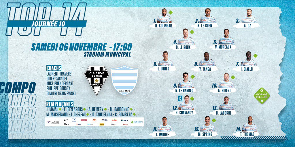 Voici le XV de départ du Racing 92 pour le déplacement à Brive :