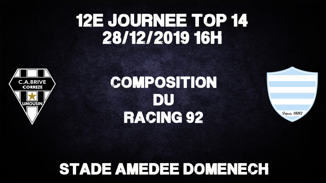 Pour ce déplacement, le Racing 92 n'aligne pas Gomes Sa (adducteurs), Lauret (adducteurs), Ryan, Tanga, Machenaud, Vakatawa, Imhoff et Zebo. 4 anciens de la maison brivistes sont sur la feuille de match avec Fabien Sanconnie, Antonie Claassen, Teddy Iribaren et Vasil Kakovin.