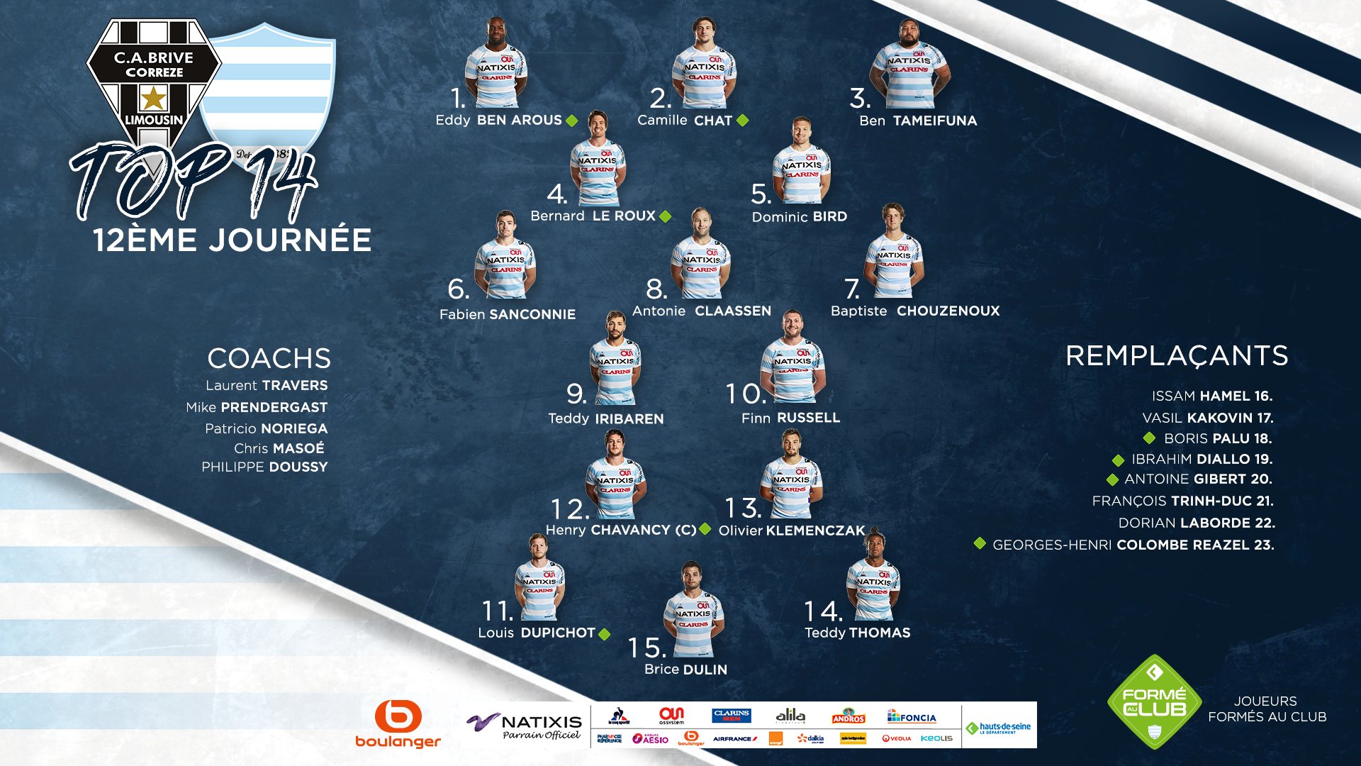 Voici le XV de départ du Racing 92 pour le déplacement à Brive :
