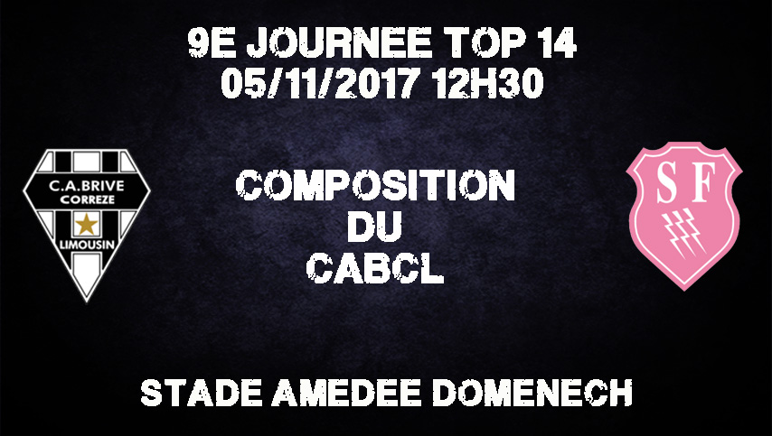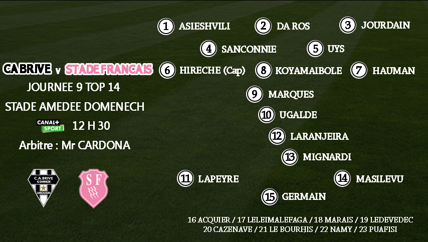Voici le XV de départ du CA Brive pour la récpetion du Stade Français :