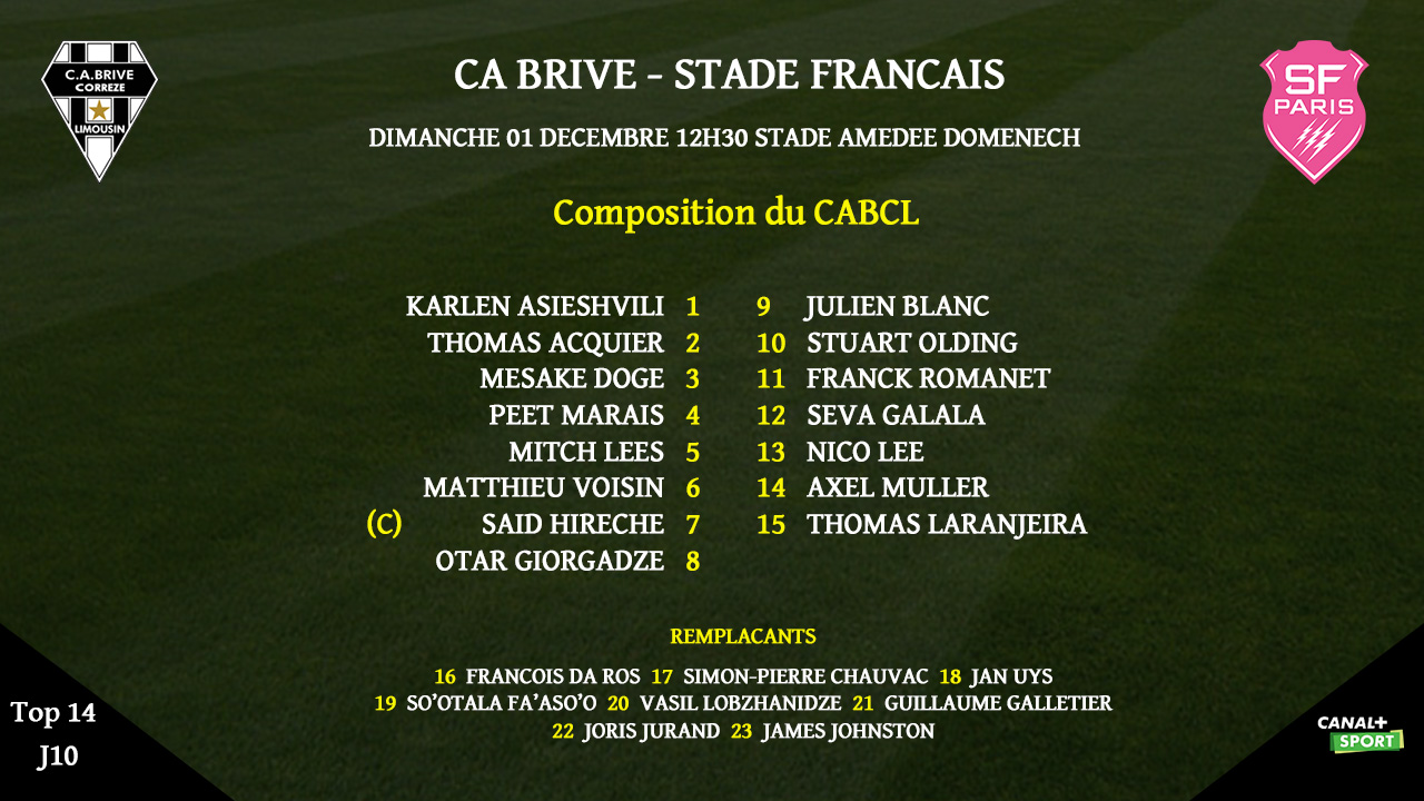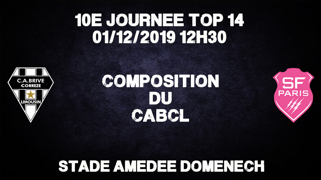Voici le XV de départ du CA Brive pour la réception du Stade Français :