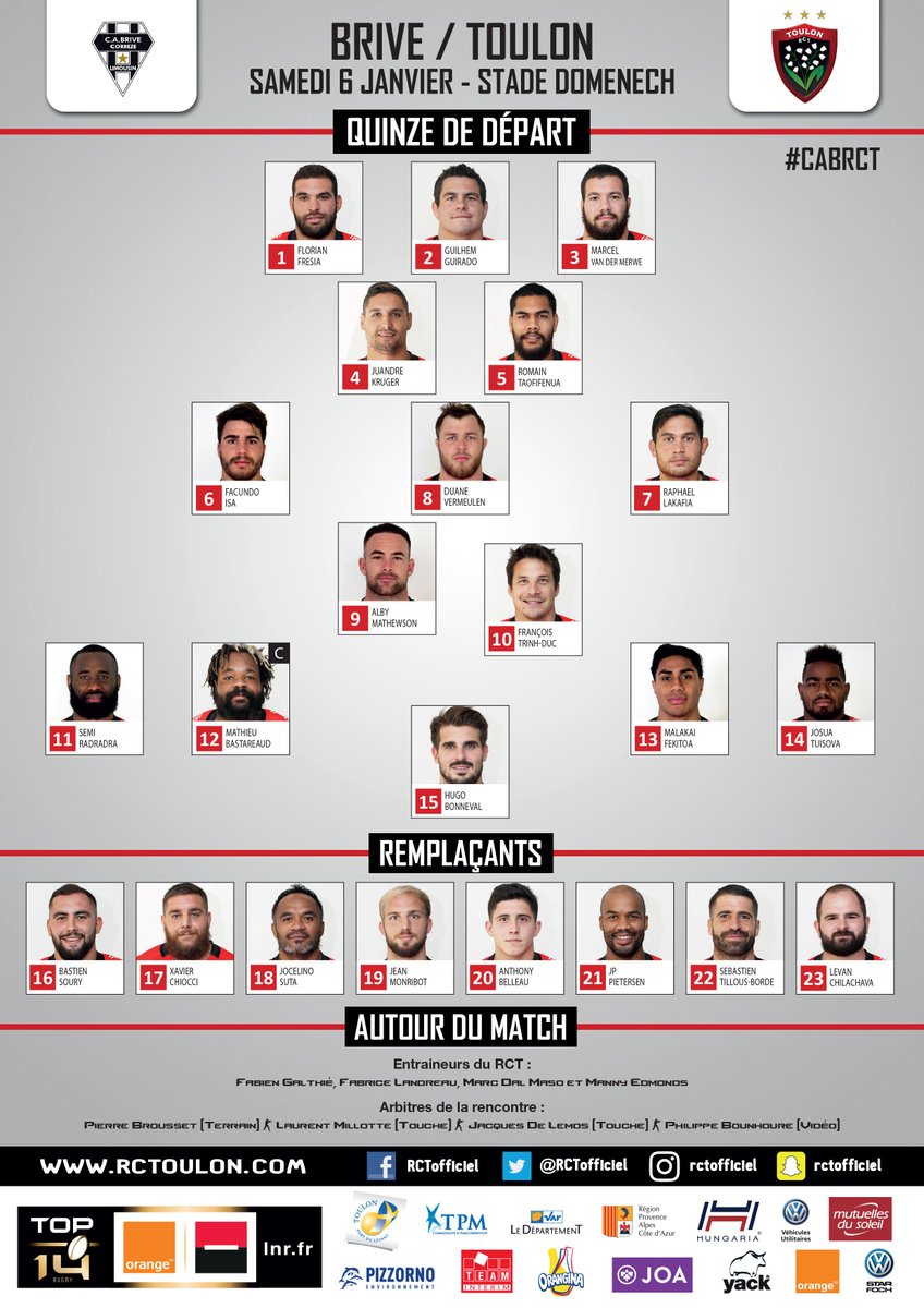 Voici le XV de départ de Toulon pour le déplacement à Brive :