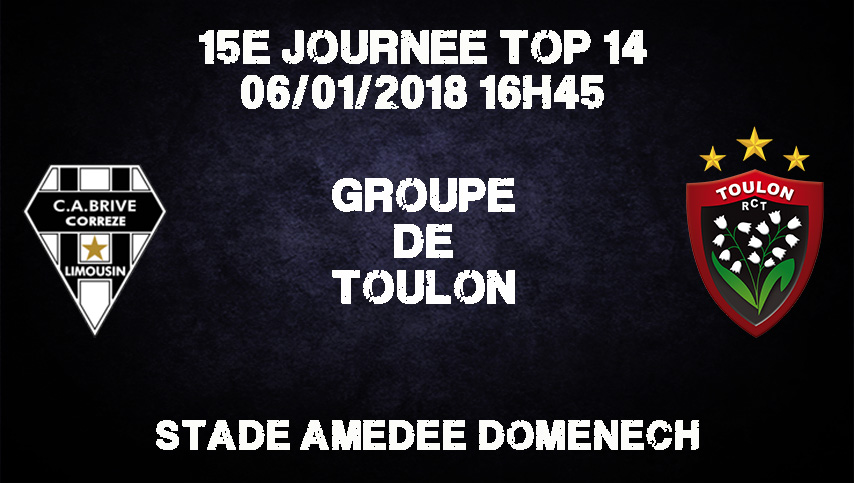 L'année 2017 s'est terminée à l'extérieur et l'année 2018 commence également à l'extérieur pour Toulon. Après avoir rendu visite à Toulouse, c'est un peu plus au nord que le RCT sera reçu samedi. Fort de sa victoire face à Montpellier, Brive espère bien continuer sa bonne série à domicile et faire tomber les toulonnais sur leurs terres.