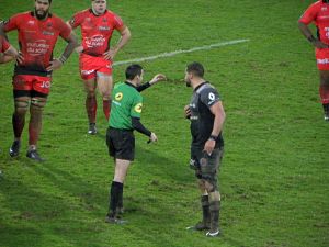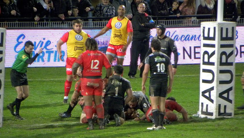 Mr Brousset revient cependant à une faute briviste préalable. Trinh-Duc concrétise ce temps fort (3-9, 48'). Brive commence à perdre ses nerfs comme sur ce plaquage à l'épaule de Seva Galala qui ne s'imposait pas. Malgré tout, Brive parvient à sauver la pénaltouche mais derrière, la défense de Toulon montre sa puissance et fait reculer le CAB. Mais la défense briviste n'est pas en reste. Les toulonnais veulent enchainer mais Fekitoa est intercepté par Lapeyre qui tape à suivre dans l'espace libre. Trinh-Duc a bien anticipé mais se retrouve sous pression. Son équipe parvient à se dégager. C'est l'heure d'apporter du sang frais à son équipe et avec une telle pelouse, cela peut être décisif d'avoir des nouvelles jambes. En difficulté la semaine dernière contre Montpellier, la touche du CAB se retrouve. Après une belle prise de balle, le maul s'enclenche et provoque la faute du RCT. Germain permet à son équipe de recoller (6-9, 59'). Par le jeu, les équipes ont du mal à s'installer dans le camp adverse alors on tente de le faire grâce au jeu au pied. C'est parti pour du ping-pong rugby sans qu'on puisse désigner un vainqueur dans ce jeu de gagne terrain. Le chrono tourne en défaveur des brivistes. Sur une chandelle, les 3/4 toulonnais semblent partir devant mais au final c'est Nadir Megdoud qui est sanctionné pour un plaquage aérien (ce qui est normal). Belleau creuse un écart qui semble décisif pour Toulon (6-12, 72'). Dos au mur et après une si grosse bataille, Brive ne peut sortir du terrain sans un point au compteur. Les brivistes jettent leurs dernières forces dans la bataille. Sisa Koyamaibole fait parler sa puissance et Brive progresse. Plus que 5 mètres à faire mais la défense du RCT se met à la faute sous ses poteaux. Mêlée à suivre, Brive veut gagner le match. La mêlée a du mal à se faire et le chrono tourne et se rapproche de la minute 80. Finalement, cela se joue et c'est parti pour un dernier pilonnage. Brive veut franchir une ligne que Toulon défend aprement. Les charges se multiplient jusqu'à ça :