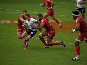 Toulon doit réagir avant qu'il ne soit trop tard. En force, le RCT déroule un maul qui termine dans l'en-but. Christopher Tolofua est le porteur de balle et donc le marqueur d'essai (17-7, 18'). Cet essai a redonné de la confiance aux toulonnais qui veulent réduire au plus vite l'écart au score et profiter de ce temps fort. Mais si la vitesse et la puissance sont du côté des visiteurs, la défense locale fait preuve de solidarité et d'application pour repousser les tentatives varoises. Les en-avants ne sont pas réservés qu'à Toulon. Brive, aussi, en commet et cela vient terminer de belles attaques comme celle où Romanet ne parvient pas à contrôler le ballon en bout de ligne dans les 22 de Toulon. Le RCT se met à la faute alors qu'on s'approche tranquillement de la pause. Laranjeira grossit l'avance de son équipe (20-7, 34'). Toulon termine mieux cette période et pousse pour recoller au score. Les toulonnais sont dans les 5 mètres brivistes. En retrait, Anthony Belleau adresse une transversale à Daniel Ikpefan qui ne peut capter cette passe au pied. On en reste là et Brive mène 20 à 7 face à Toulon. Le CAB a réalisé un début de match tonitruant pour rapidement prendre les devants et ainsi contrôler un peu mieux la rencontre. Attention à la réaction toulonnaise après la pause.