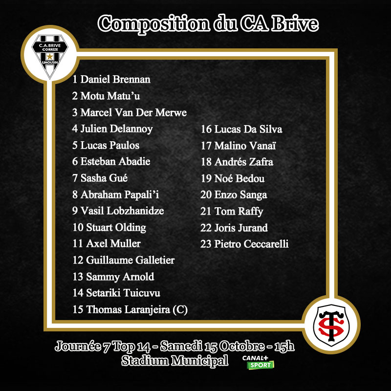 Voici le XV de départ du CA Brive pour la réception de Toulouse :