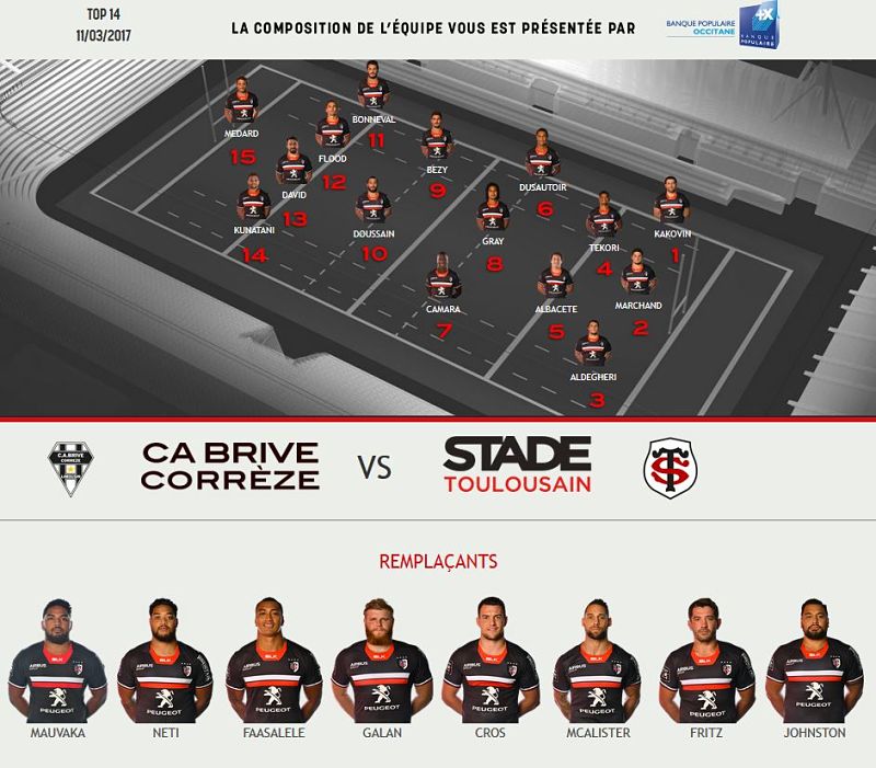 Voici le XV de départ de Toulouse pour se déplacer à Brive :