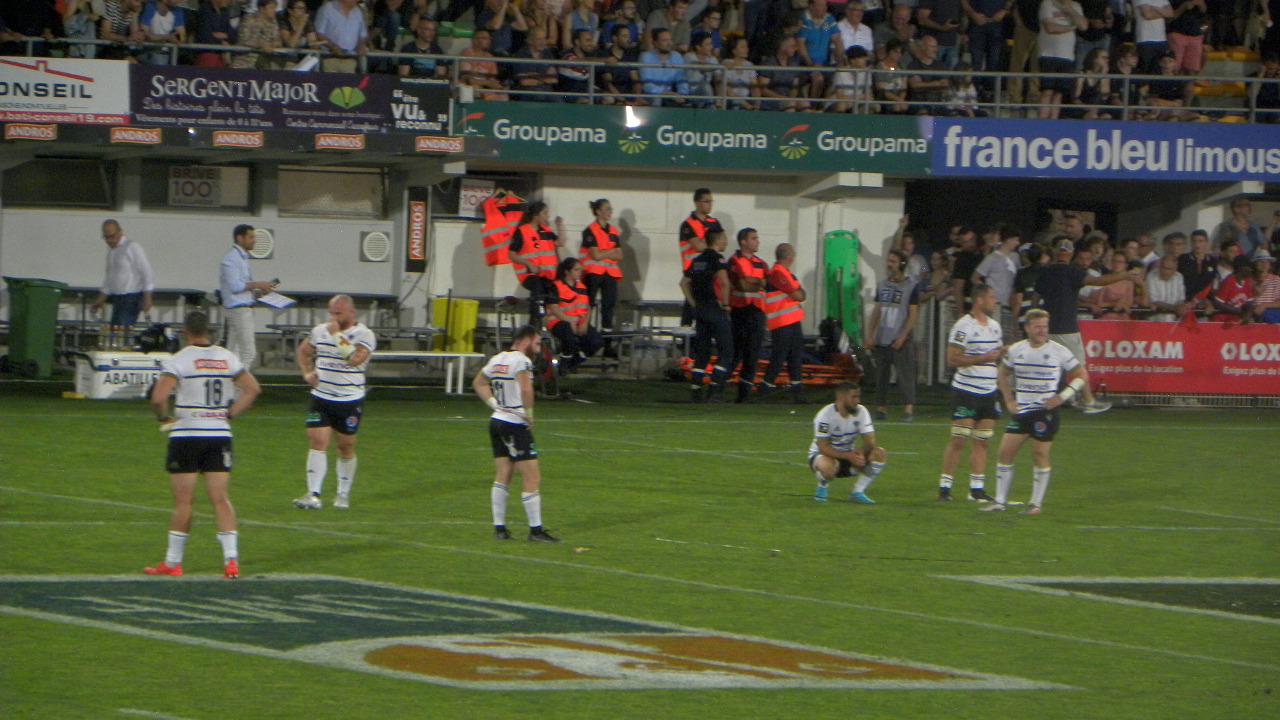 Le répis est de courte durée et les toulousains montrent qu'ils ne sont pas venus pour acheter du terrain. Après une séance de jonglage entre Thibaut Flament et Lucas Paulos, Antoine Dupont récupère le ballon, échappe à Stuart Olding et s'en va marquer le premier essai du match (0-7, 10'). Brive est absent de ce début de rencontre et subit le jeu toulousain. Brive est coincé dans son camp et ne parvient pas à en sortir à cause d'un jeu au pied approximatif et cadeau pour l'arrière garde toulousaine qui se régale. Mais un fait de jeu pourrait tout changer. Sur un ruck, Charlie Faumuina percute au déblayage Luka Japaridze au niveau des cervicales. Après vidéo, Mr Ramos expulse le pilier toulousain (18'). Brive va évoluer pendant plus d'une heure en supériorité numérique. Brive tente d'en profiter avec une touche sur les 22 toulousains mais l'attaque ne crée pas de décalages et la défense adverse se montre la plus forte dans le jeu au sol en récupérant une pénalité. Malgré une supériorité numérique, la mêlée briviste est en souffrance à l'image de Daniel Brennan qui vit un calvaire face à son club formateur. La mêlée souffre tout comme le jeu au pied. Sur un jeu au pied de Paul Abadie, des joueurs sont hors-jeu. Ramos inscrit 3 nouveaux points (0-10, 26'). Brive passe à côté de son match et ce qui suit est un symbôle : coup d'envoi direct en touche de Hervé, faute en mêlée de Brennan. Depuis la ligne médiane, Ramos tente la pénalité mais manque la cible (29'). Si le contre en touche fonctionne à Brive, la touche offensive est totalement perturbée et accumule les pertes de balle. La conquête briviste passe à côté. Brive est confiné dans son camp et à l'heure actuelle, difficile de dire qui évolue en infériorité numérique. Toulouse joue à sa main, sans forcément forcer son talent, juste en profitant des approximations brivistes. A quelques minutes de la pause, nouveau frisson dans le camp briviste. Dupont attaque la ligne et pousse le ballon au pied, Ramos le récupère et marque son essai. Après vidéo, un en-avant est signalé, l'essai est refusé (37'). A la sirène, Joris Jurand ne se fait pas prendre sur un débordement et envoie un toulousain hors des limites du terrain. Ca s'explique entre les deux équipes. Mr Raynal fait preuve de pédagogie et siffle la pause. Brive est en train de passer à côté de sa rencontre. Toulouse n'en demandait pas tant.