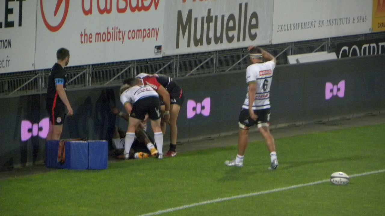 Rien ne semble changer en ce début de seconde période. Toulouse continue son occupation du terrain et se montre à nouveau dangereux. Matthis Lebel termine en coin mais une passe en-avant est signalée. Sur l'action, Saïd Hirèche reste au sol et doit céder sa place. La blessure à la jambe est sérieuse pour le capitaine briviste, remplacé par Matthieu Voisin (46'). A peine entré en jeu, le 3e ligne briviste provoque le premier éclair briviste de la soirée avec une percée sur 40 mètres. Après un passage au sol, l'action se termine par ... un en-avant (48'). Sur la mêlée, Brive remporte son duel et obtient une pénalité. Hervé inscrit les premiers points du CAB et le stade commence à y croire enfin (3-10, 50'). Si Toulouse use de son jeu au pied pour maintenir Brive dans son camp, on sent que les brivistes sont en mesure de faire quelque chose à l'heure de jeu. Après une pénalité et une touche trouvée dans le camp toulousain, Brive enclenche un maul qui progresse bien mais les toulousains arrachent le ballon et commettent un en-avant. Sur la mêlée, Nico Lee franchit et passe à Setariki Tuicuvu qui pousse au pied et aplatit juste avant de percuter les panneaux publicitaires derrière l'en-but. Après vidéo, l'essai est refusé (57').