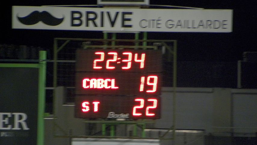 A l'image de son équipe, le public reprend espoir et se fait entendre bruyamment. Toulouse est dans les cordes et Brive est porté par une force venue de nulle part. Roumieu paie l'indiscipline de son équipe en écopant d'un carton jaune (77'). Les pénaltouches se multiplient dans les 22 adverses et Brive ne cherche que la victoire et sent qu'elle est toute proche. Le maul est lancé et les 3/4 viennent prêter main forte à leurs avants. Les toulousains défendent comme ils peuvent mais l'arbitre ne signale pas de faute, juste un en-avant. Dernière mêlée, dernière poussée mais la première ligne briviste est pénalisée. Doussain tape en touche et Toulouse l'emporte en se faisant très peur dans ces dernières minutes. Pour Brive, encore et toujours des regrets même si le compteur est débloqué mais toujours vierge de victoires.
