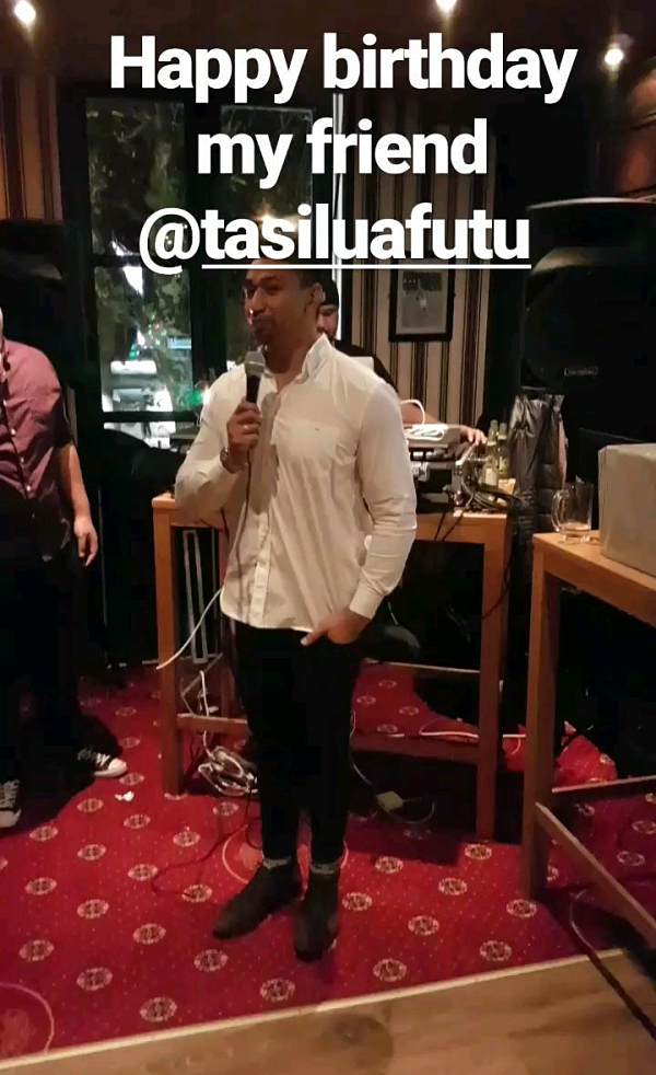 Après le match, avec cette victoire, l'esprit était un peu plus libéré pour fêter l'anniversaire de Poutasi Luafutu. Bon anniversaire Tasi ! (Instagram Peniami Narisia)