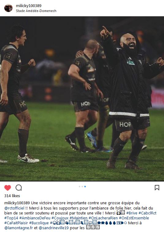 Il y a un paquet de brivistes heureux ce soir et ça fait plaisir. On a réussi à confirmer la victoire de la semaine dernière au bout d’une bataille vraiment dure avec Toulon qui était venu armé car ils avaient besoin de points important. Mais nous avions davantage besoin de points qu’eux et c’est ce qui nous a fait nous dépasser en fin de match et réussir à marquer pour passer devant eux. On s’est fait confiance. Sur la dernière action on a décidé de prendre la mêlée car je savais qu’on allait marquer. J’en étais persuadé ! La vérité est là : on a réussi à remporter ce match très difficile. Mais la route est encore longue. On est parti sur de bonnes bases mais ça reste encore fragile. Il ne faut pas s’emballer. On travaille dans l’ombre et on fera tout pour s’en sortir.