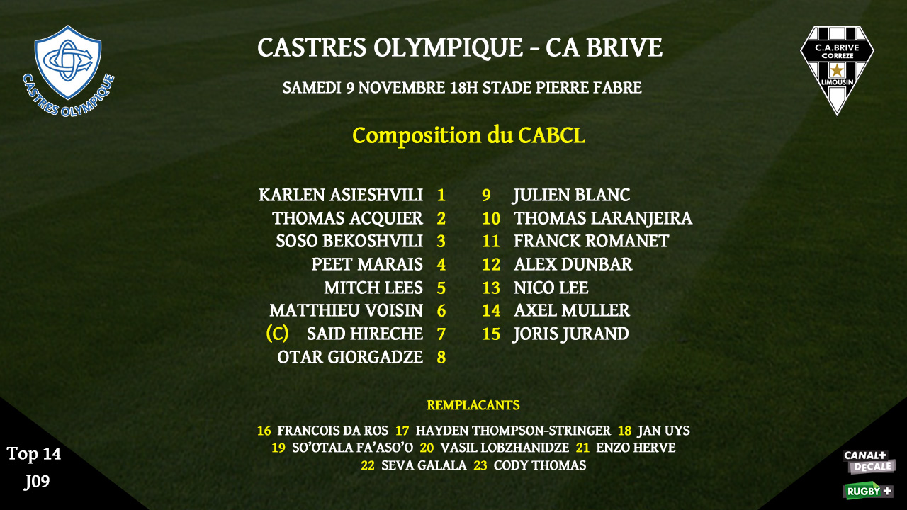 Voici le XV de départ du CA Brive pour le déplacement à Castres :