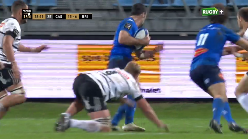 La précision de Laranjeira maintient le CAB en vie jusqu'à présent. Le buteur passe une nouvelle pénalité (22-12, 42'). Dans le même temps, Soso Bekoshvili quitte ses coéquipiers le bras gauche en écharpe, il est remplacé par Cody Thomas. Les brivistes sont malgré tout revenus avec de bien meilleures intentions offensives. Thomas Laranjeira, dans une relance, est pris par 3 joueurs castrais avec un plaquage haut au passage. De la ligne médiane, le buteur briviste connait son premier échec de la soirée (52'). Quelques instants plus tard, Nico Lee est repris à quelques mètres de l'en-but, poussé en touche par la défense de Castres (56'). Brive est dans le camp adverse et obtient un bras cassé sur une mêlée introduction Castres. So'otala Fa'aso'o charge pleine bille sur Urdapilleta et avance (logiquement) sur plusieurs mètres. Hayden Thompson-Stringer avance aussi à son tour. Vasil Lobzhanidze écarte sur Enzo Hervé qui volleye vers Alex Dunbar. L'écossais, d'une chistera, passe après contact à Axel Muller qui marque l'essai du CAB en coin (22-19, 59').