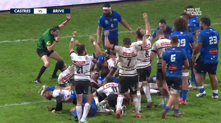 Tout est presque à refaire pour Castres qui a vu revenir un CAB bien plus fringant en cette 2e période. Mais le CO revient à la charge et conserve le ballon aux abords des 22 brivistes. Kockott va chercher la faute de Mitch Lees. Dumora ne se prive pas de rajouter 3 points de plus (25-19, 67'). Brive n'abdique pas et n'oublie pas ses objectifs sur ce match. A dix minutes de la fin, le CAB n'est pas loin de réussir un gros coup du côté de Castres. La mêlée briviste est solide et obtient une nouvelle pénalité. La pénaltouche est choisie et les avants tentent d'y aller en force mais la défense plie mais ne rompt. Les arrières tentent leur chance, Lee est repris à 5 mètres de la ligne après une course bien tranchante. Le CAB est très menaçant mais Enzo Hervé s'emmêle un peu les pinceaux en optant pour un jeu au pied rasant qui ne s'imposait pas (73'). Castres peut souffler mais la pression va vite revenir. Seva Galala subit un plaquage haut. A 45 mètres en coin, on opte pour une nouvelle pénaltouche à 10 mètres de l'en-but. Belle prise de balle et le maul s'enclenche avec le soutien de la plupart des 3/4. C'est François Da Ros qui s'écroule dans l'en-but et récompense les intentions de son équipe. Thomas Laranjeira transforme et Brive repasse en tête alors qu'il reste une poignée de minutes à jouer (25-26, 77').