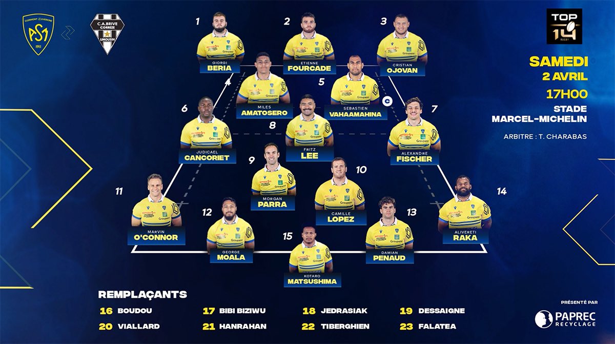 Voici le XV de départ de Clermont pour la réception de Brive :
