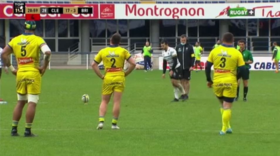 Les chocs font mal et Brive va payer son indiscipline. Victor Lebas est pris à la faute et écope d'un carton jaune (33'). Après une nouvelle faute, Parra prend les points et enchaine (20-6, 35'). Sur le renvoi, petite erreur de Raka qui laisse trainer le pied sur la touche. Les avants tentent d'en profiter sur la touche mais Clermont se met à la faute. Brive se rapproche et c'est à ce moment qu'Iturria bondit et vole le ballon dans l'alignement. Le capitaine est un véritable poison pour Brive avec un nouveau ballon volé en touche. Si Brive laisse passer (à nouveau) une belle occasion d'essai, Clermont est tout proche d'un 3e essai. Aliveriti Raka transperce la défense et voit l'en-but se rapprocher mais c'était sans compter sur le retour de Setareki Bituniyata qui, d'un plaquage, sauve l'essai pour le CAB juste avant la sirène. Une sirène qui retentit et qui confirme la domination de Clermont dans cette première période. Brive paie son absence de matchs depuis un mois et peine à suivre le rythme de l'ASM.