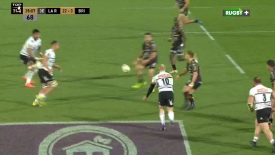 Le jeu offensif. C'est un paradoxe dans cette rencontre. Oui, Brive marque 22 points à La Rochelle et devient l'équipe qui a marqué le plus de points à Marcel Deflandre. Le CAB marque aussi 3 essais lors de cette rencontre. Alors on pourrait dire que l'attaque de Brive a bien fonctionné. Mais en fait, cela n'a pas vraiment été le cas. Pendant une grande partie de la rencontre, Brive bute sur une défense et ne parvient à créer des différences. Si en face des joueurs comme Leyds, Rhule ou Sinzelle sont tranchants et mettent le feu dans la défense, ce n'est pas le cas de Brive. Les attaques sont souvent trop lisibles, comme sur cette attaque interceptée par Sinzelle et qui débouche sur l'essai d'Alonso Munoz. On ne retrouve plus ces avants qui mettent régulièrement l'équipe dans l'avancée. Les 3/4 manquent de joueurs pouvant faire régulièrement la différence sur des actions individuelles. Pour se sortir de ce mauvais pas cette saison, Brive va devoir trouver des solutions pour posséder un jeu d'attaque plus efficace. Actuellement, le CAB est à sa place mais on espère que des solutions vont être trouvées.
