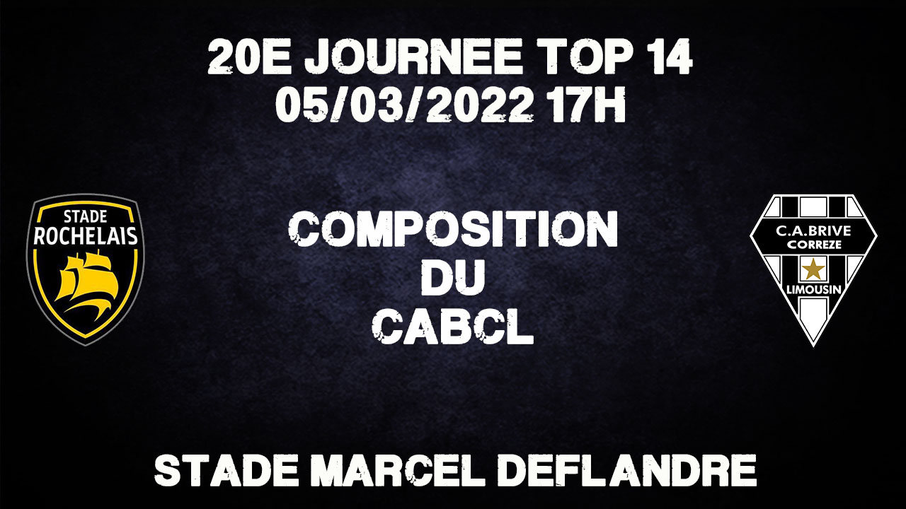 Voici le XV de départ du CA Brive pour le déplacement à La Rochelle :