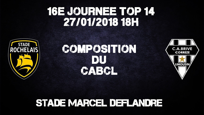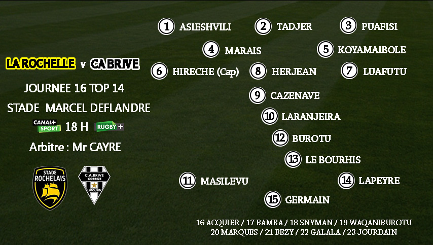 Voici le XV de départ du CA Brive pour le déplacement à La Rochelle :