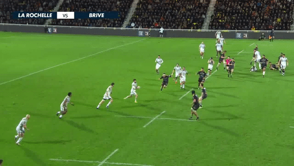 Brive débute en infériorité numérique et souffre en conquête. La défense est prise en position de hors-jeu. Lamb transforme (26-10, 47'). La Rochelle fait appel à son banc XXL pour aller chercher le bonus offensif. Mais la défense briviste parvient à repousser l'offensive. Masilevu accélère et donne de l'air à son équipe en gagnant 20 mètres. La Rochelle se met à la faute et l'ailier joue vite pour enflammer la partie. Le jeu rebondit sur les extérieurs, Seremaia Burotu fixe son défenseur et décale Benjamin Lapeyre. L'ailier crochète son adversaire et résiste au retour de Jordaan pour aplatir son essai (26-17, 53').