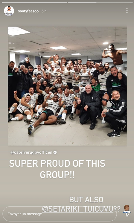 Nous avons gagné et nous sommes heureux. Bravo les garçons. Merci aux supporters. @CABCLRUGBY pic.twitter.com/iFReVnNo7o