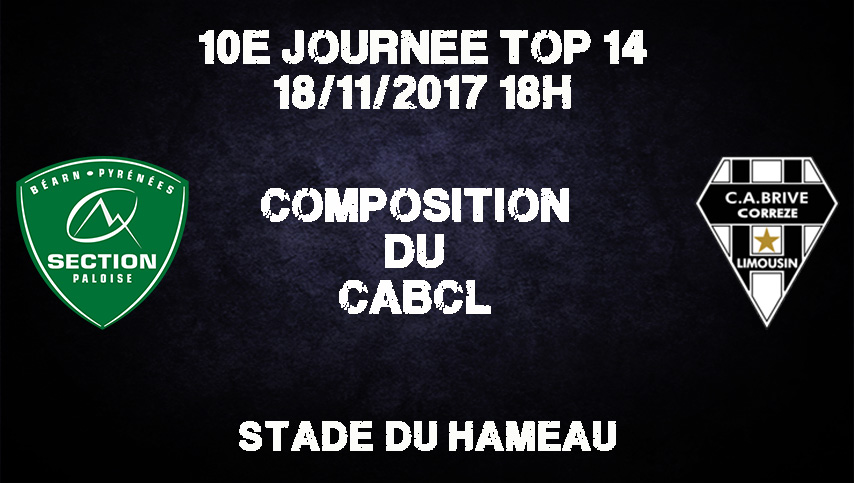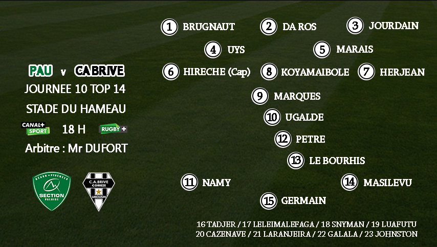 Voici le XV de départ du CA Brive pour le déplacement à Pau :