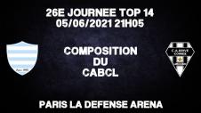 1 Ben Arous (Cap) (46' Kolingar) - 2 Baubigny (26' Le Guen) - 3 Colombe (46' Gomes Sa) - 4 Le Roux (66' Bird) - 5 Bird (51' Ryan) - 6 Tanga - 7 Chouzenoux (26' Palu) - 8 Claassen - 9 Le Garrec - 10 Russell (64' Gibert) - 11 Taofifenua - 12 Fickou (75' Vakatawa) - 13 Vakatawa (50' Trinh-Duc) - 14 Thomas - 15 Beale (54' Dupichot)