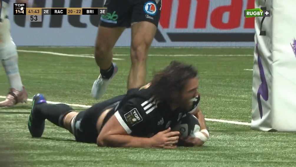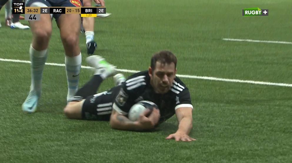 Ceux qui sont restés trop longtemps à la buvette ont manqué quelque chose d'important. Sur le coup d'envoi, Brive récupère la munition et s'installe dans les 22 mètres. Ca enchaine bien et Nicolas Sanchez franchit la ligne défensive. Il regarde à droite mais personne est démarqué alors il opte pour la gauche et trouve son compatriote Lucas Paulos qui marque au milieu des poteaux (20-24, 42').